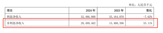 利息净收入下降的情况下,上海银行依靠非利息收入拉动营收增长。2024年,上海银行的非利息净收入达204.99亿元,同比增长33.11%。